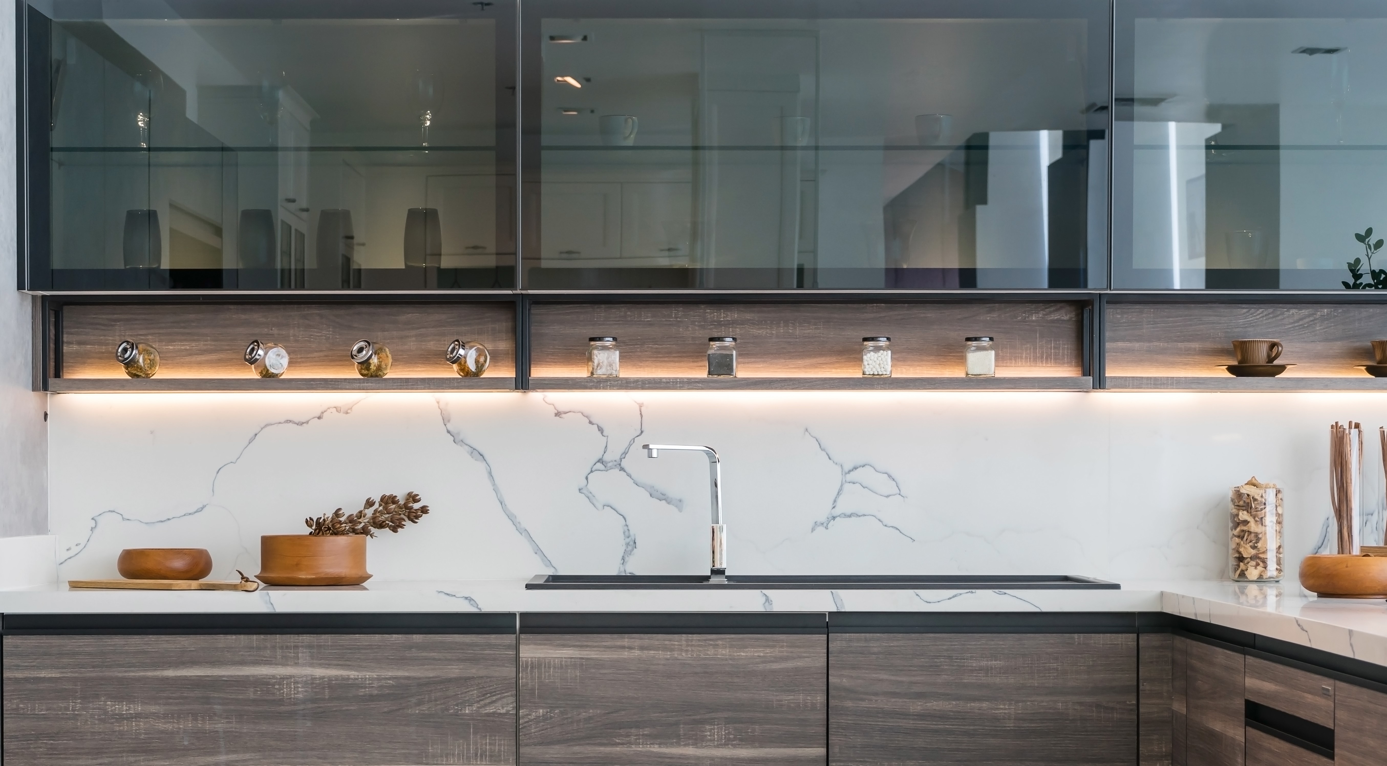 Les portes à cadre en aluminium offrent des options de design à la fois intemporel, contemporain, moderne et classique qui améliorent le look de vos aménagements par une touche de raffinement aux armoires.